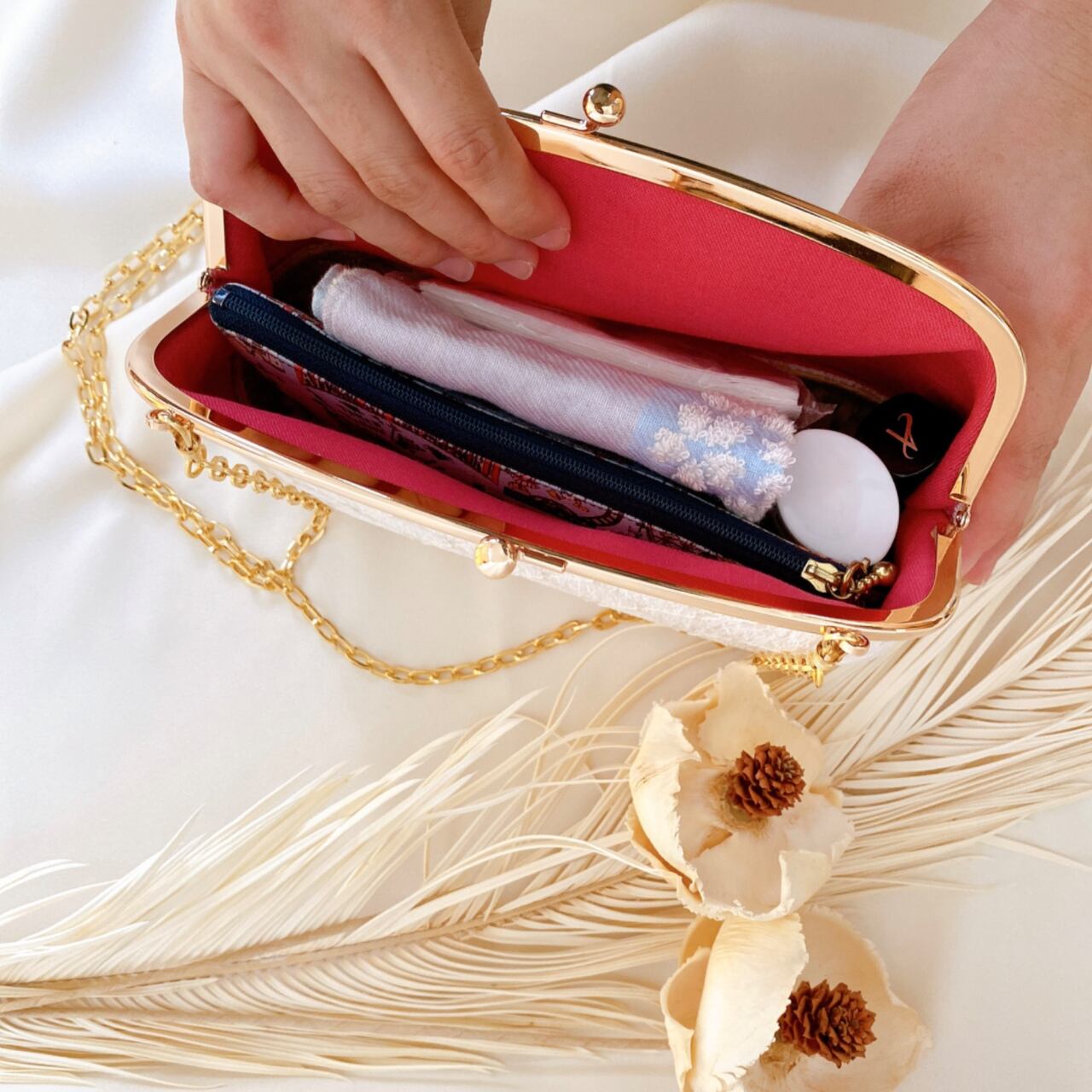 深すぎないのでがま口を開くとサッと中のものが